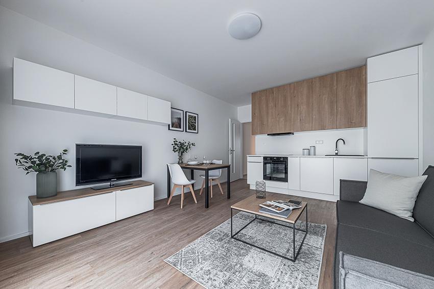 AFI Europe ensures that all its rental residences meet high-quality standards, featuring modern design, furnished interiors, and thoughtful amenities. Each apartment includes a fully furnished living room, bedroom, and kitchenette, with most units also featuring balconies or loggias. Residents benefit from ample parking, 24-hour reception services, and dedicated property management, ensuring regular maintenance and seamless tenant support.
