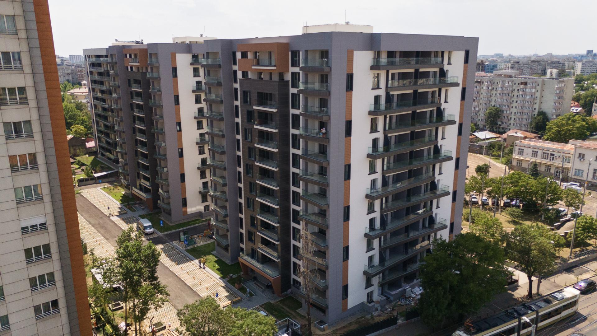 Located on Calea Dudești No. 186, in the Dristor/Vitan area, near București Mall, the complex includes 347 apartments – studios, two and three rooms and duplexes – with surfaces between 46 and 175 net sqm and terraces of up to 37 sqm. The project covers an area of 8,500 sqm of land and has approximately 47,000 sqm built, including the underground, and each of the three buildings has a height of S+P+10E+Duplex. The complex also offers green spaces, as well as an underground parking lot that connects all three buildings.
