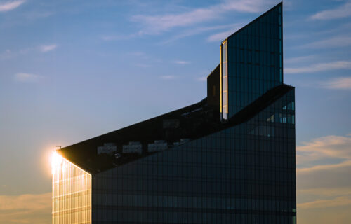Completed in early 2021, Skyliner is one of Poland’s tallest office buildings at 195 metres. It holds a BREEAM Excellent certificate and operates on 100% renewable energy. The building offers 45,000 square metres of leasable office space and houses tenants such as Bolt, Booksy, Coca-Cola Poland Services, XTB, and Mindspace.