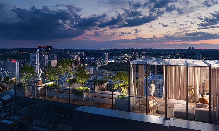In the ATAL Olimpijska project, the Blue Bolt system will include an extended range of functions. These cover not only access to elevators and parking areas, but also solutions related to residents’ safety and the management of shared amenities. One new feature is access control for the rooftop terrace of a 35-storey building, where capacity limits apply. Through the application, residents will be able to check in real time how many people are currently using the terrace and decide whether to enter or wait.