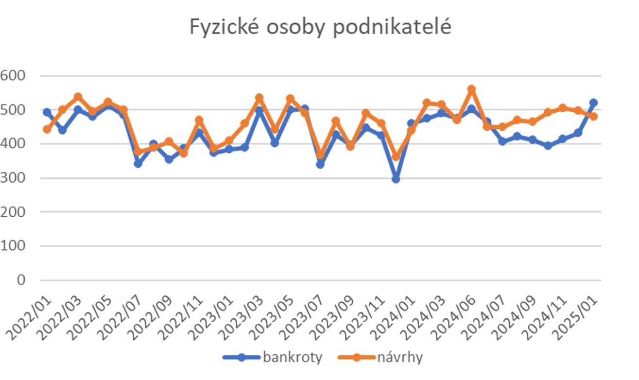 The number of bankruptcies among sole proprietors in the Czech Republic increased sharply in January, with 520 cases recorded, marking a 21% rise compared to December. Meanwhile, 480 new bankruptcy filings were submitted, a 3% decrease from the previous month. According to an analysis by CRIF – Czech Credit Bureau, the Moravian-Silesian Region continues to have the highest rate of bankruptcies relative to the number of active entrepreneurs.