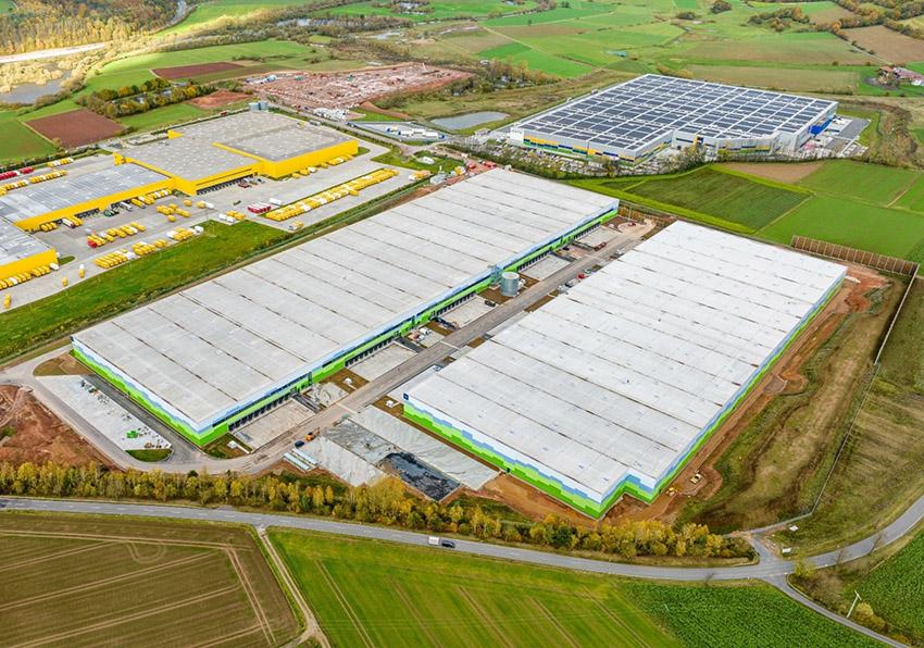 Located on a 191,000-square-metre site in the Mecklar-Meckbach industrial estate, the logistics centre consists of two parallel buildings with a total clear height of 12.20 metres and a floor load capacity of six tonnes per square metre. Built by general contractor Fabrikon, the facility also includes approximately 7,000 square metres of intermediate-level space and 3,000 square metres for offices and social rooms.