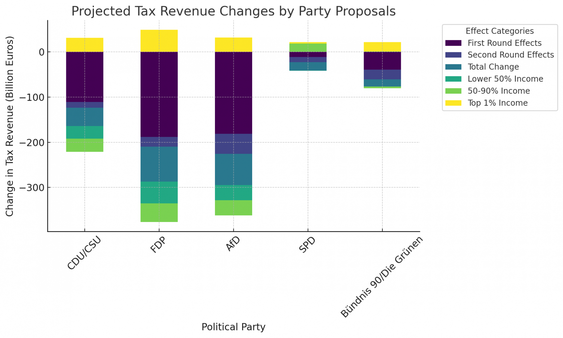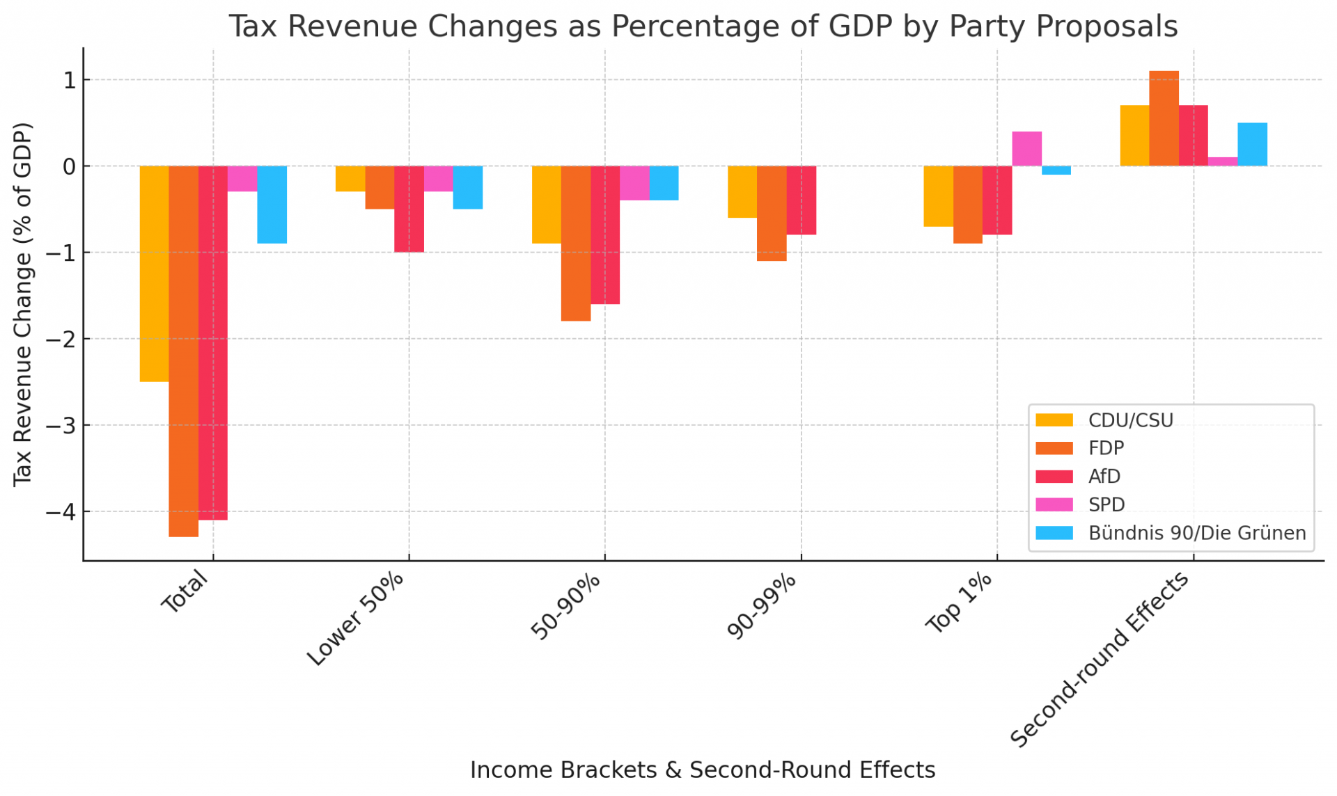As Germany’s federal election campaign gains momentum, tax policy has emerged as a central issue, with major political parties proposing reforms that could significantly impact public finances. Proposals from the CDU, FDP, and AfD advocate for extensive tax relief, primarily benefiting high earners and businesses. However, these measures could increase the national deficit by up to four percentage points of GDP. In contrast, the SPD and Greens aim to ease the tax burden on lower and middle-income groups while increasing levies on high earners and wealth.