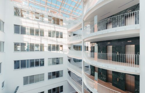 The HOP office building, owned by Syrena Real Estate, has undergone refurbishment in recent years with backing from PineBridge Benson Elliot. The upgrade included changes to the building’s façade and the creation of a public square of approximately 600 sqm in front of the property. Interior updates include co-working space, conference facilities totalling around 1,000 sqm, bicycle infrastructure and electric vehicle charging points in the underground car park.