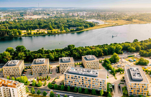 Malta Office Park consists of six office buildings located next to Lake Malta, an area with long-established recreational and sports facilities as well as convenient public transport links. The surroundings include service points, retail outlets and cycling routes that connect the district with other parts of the city.