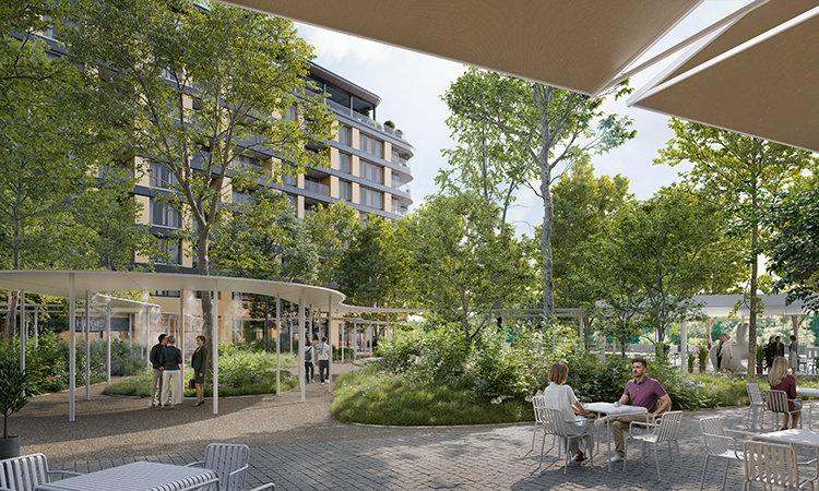 The new public space, Lanfranconi Square, will cover 2,600 m² and was designed by BETWEEN studio. The square will integrate mature trees, planting areas, seating and shaded zones to support cooling and water retention. It aims to enhance biodiversity and improve the microclimate of the waterfront.