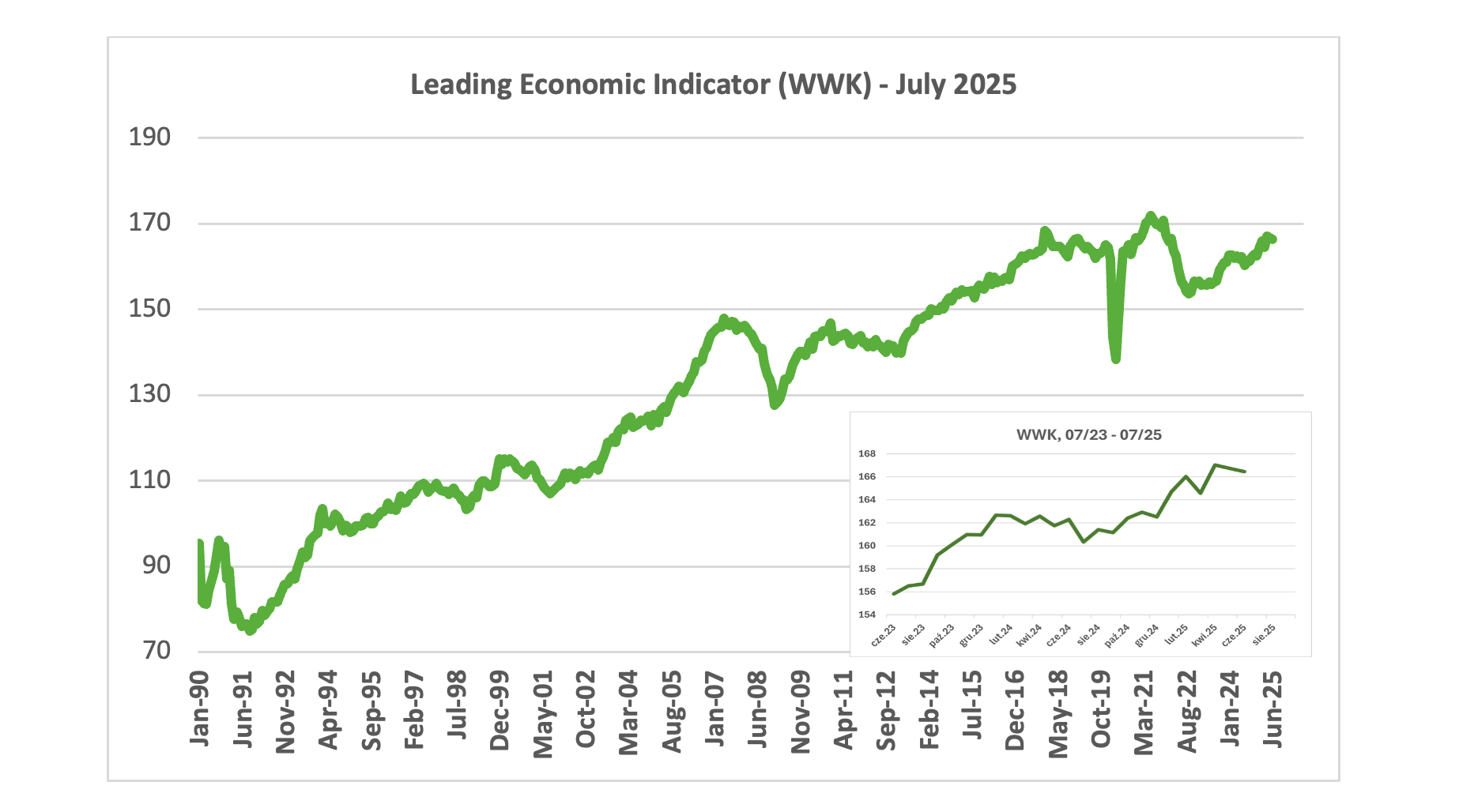 Poland’s Leading Economic Indicator (WWK), a composite index that provides early signals on the direction of the economy, recorded a second consecutive monthly decline in July 2025, dropping by 0.3 points month-over-month, according to data published by the Central Statistical Office (GUS) and the Economic Institute of the Polish Academy of Sciences. The primary factor behind this decline was a notable reduction in the volume of new orders received by manufacturing companies, which has in turn led to slightly weaker financial performance across the sector.