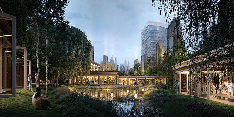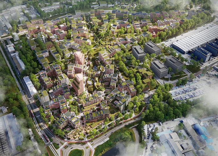 The masterplan envisions 300,000 sq. m of above-ground development, with a majority allocated for residential use. The district will also feature restaurants, retail spaces, entertainment venues, services, education, and cultural institutions. Approximately 10 hectares will be dedicated to green spaces, including a four-hectare central park, plazas, flower meadows, woodlands, and ponds. Underground parking and electric vehicle charging stations will also be incorporated, along with extensive infrastructure for cyclists.