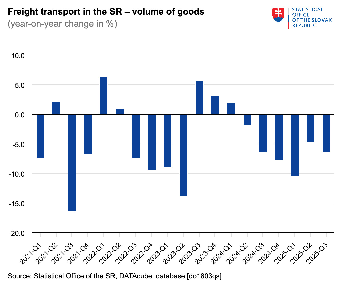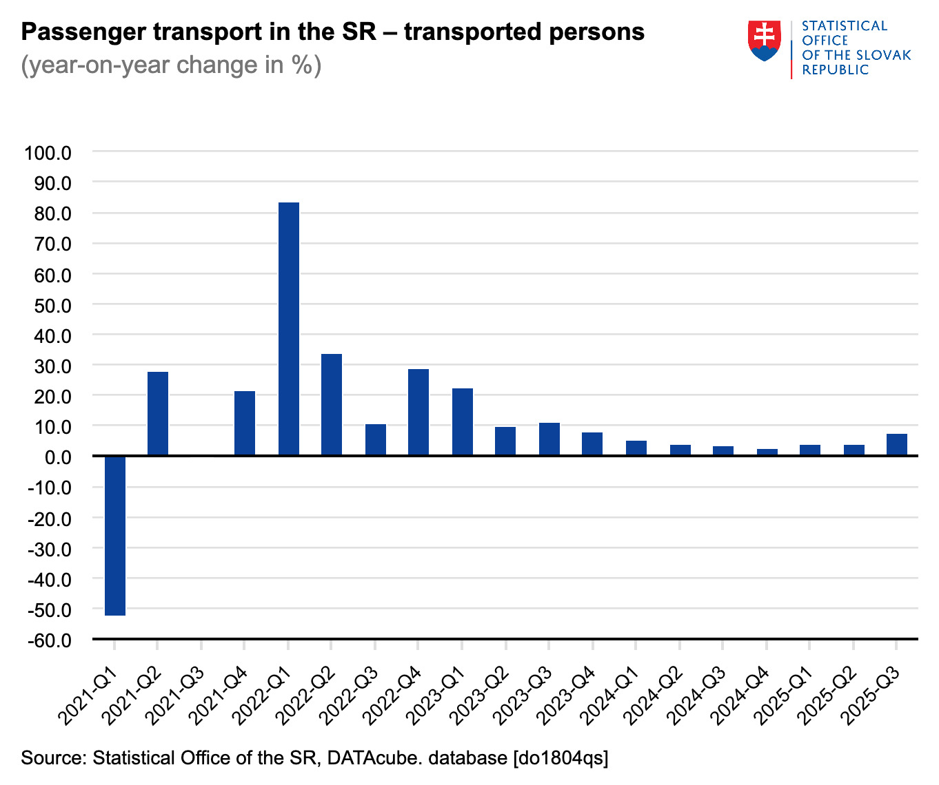 The Statistical Office of the Slovak Republic has released new quarterly data showing contrasting developments in the country’s transport sector during the third quarter of 2025. Passenger transport continued its upward trend across most modes, while freight transport recorded another significant decline.