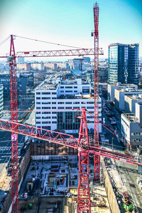 By the end of 2024, excavation work removed 68,000 cubic meters of soil, and more than 200 piles were drilled. In early 2025, the concrete foundation slab was completed, and construction of the basement levels is now underway, with completion expected in spring. The building will include 20,200 square meters of office space and 2,400 square meters of retail space, with 71 rental apartments set to be available in the first half of 2027.