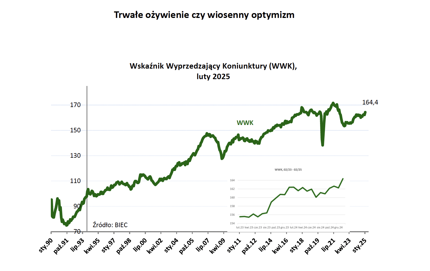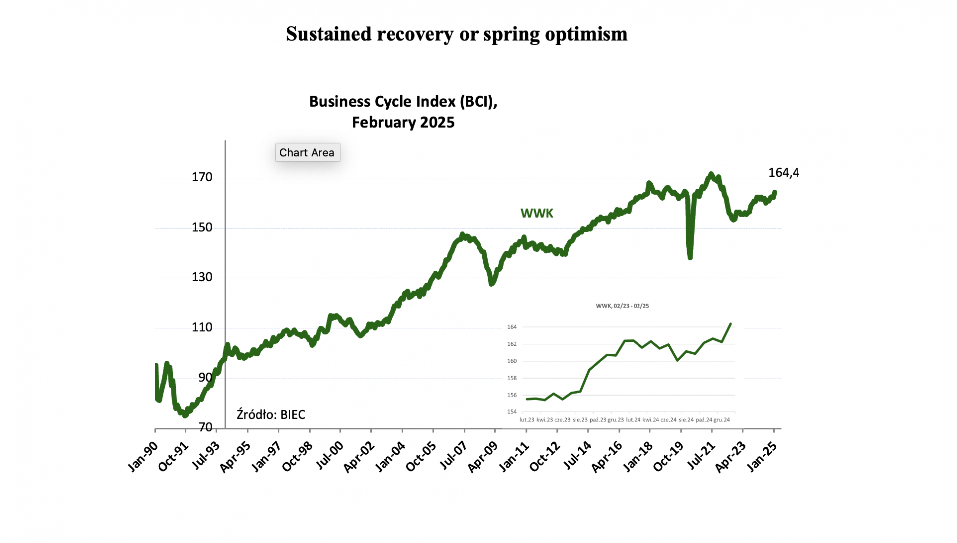 A key factor behind the index’s rise is the strong performance of the Warsaw Stock Exchange. The WIG index reached another peak, though in real terms it has only returned to levels seen in March 2024. Analysts suggest that while recent stock market momentum has contributed to positive sentiment, the potential for further rapid growth may be limited in the short term.