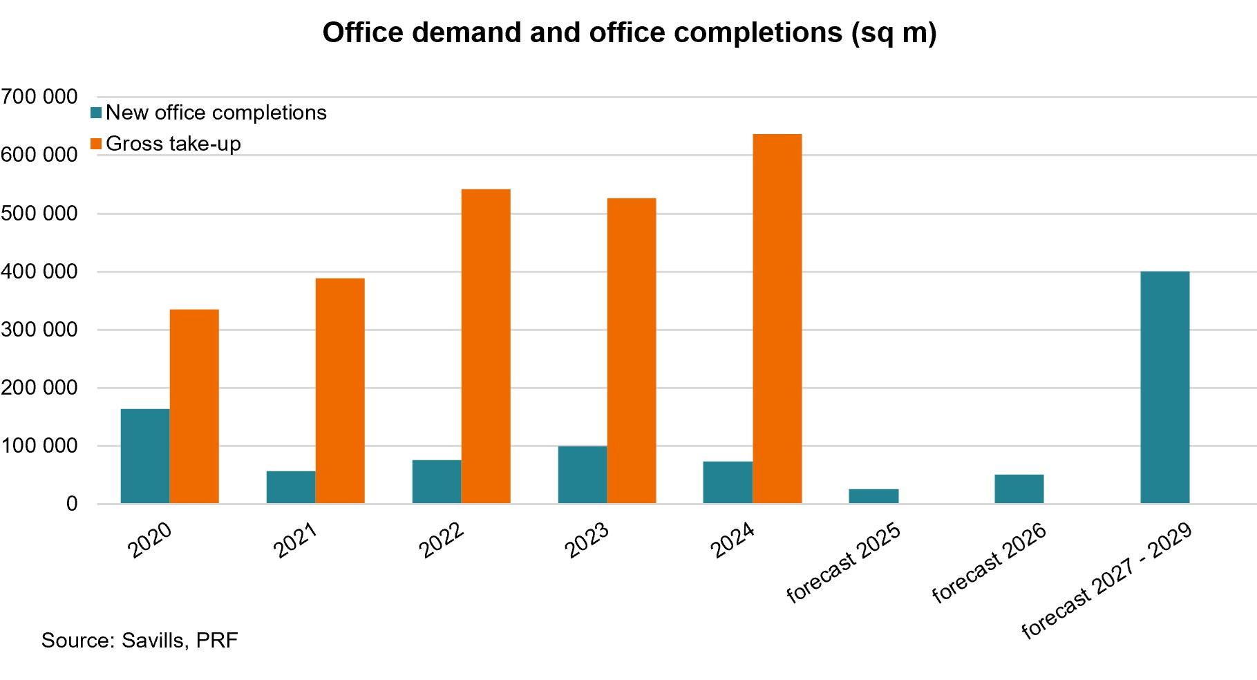 The demand for office space in Prague reached an unprecedented level in 2024, with companies seeking a total of 637,000 square meters. However, only 24,600 square meters of new office space is expected to be delivered in 2025, exacerbating the existing supply shortage. Analysis by Savills indicates that office development in Prague has been in steady decline since 2021, with just 72,800 square meters of office space completed in 2024. This ongoing reduction in supply has created a significant imbalance in the market.