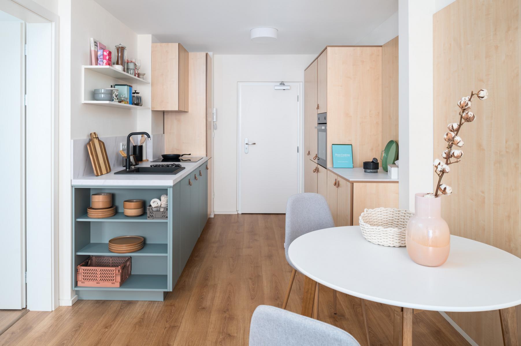 Prospective buyers can explore four model apartments, each designed with unique themes inspired by European capitals—Prague, Oslo, and Berlin—created in collaboration with design partners Kitchen and Interior Living, and architecture studio Reaktor. The Prague-inspired unit features warm tones and traditional materials, while Berlin offers an edgy, high-contrast aesthetic, and Oslo embodies minimalist Nordic design. Recently, an additional model unit was introduced in partnership with retailer Bonami, allowing future residents to visualize a variety of design possibilities. Buyers are encouraged to add personal touches to their interiors, tailoring each space to their tastes.