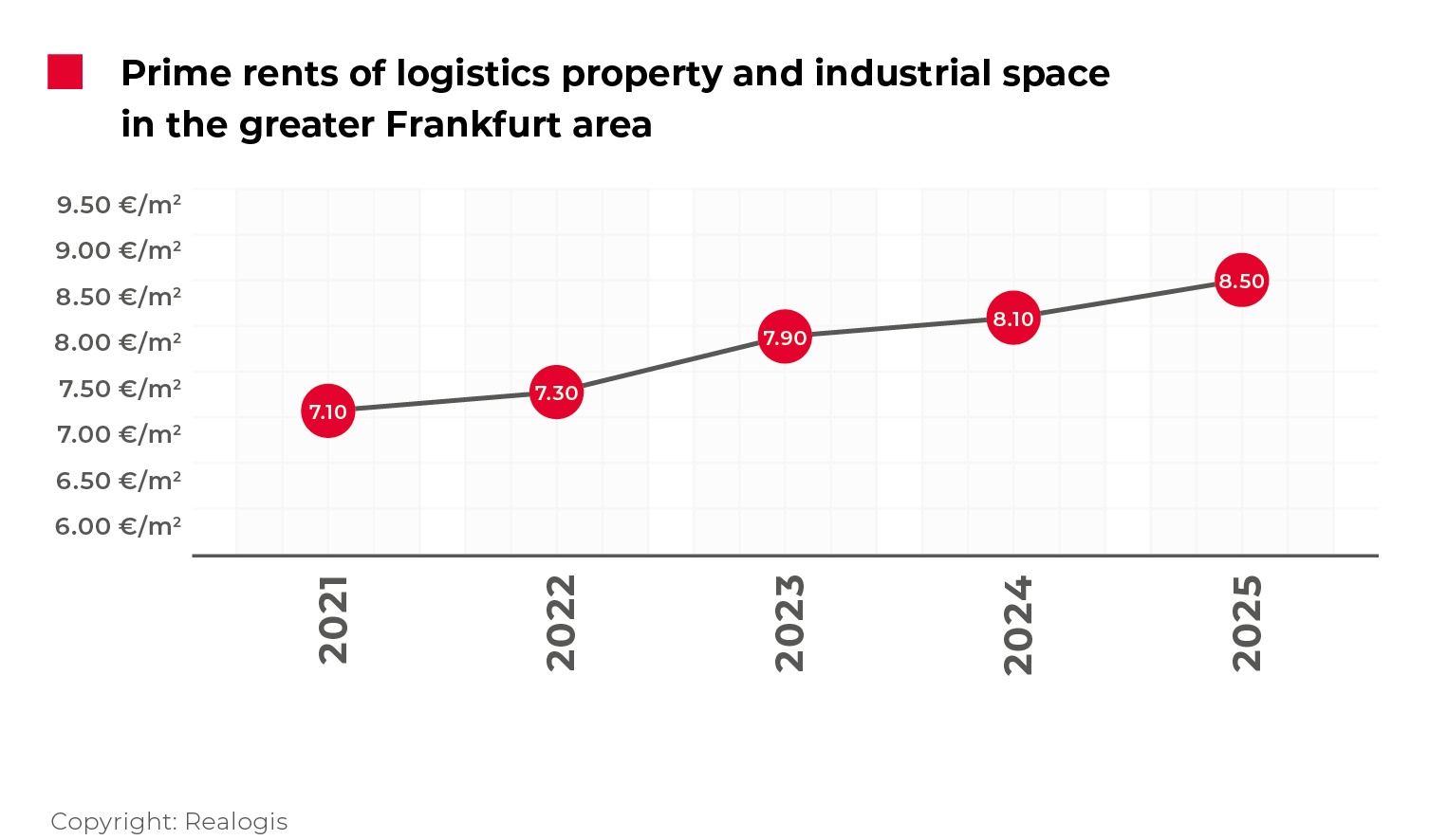 Larger units gained further importance in 2025. Properties above 10,000 sq m accounted for more than one-third of total take-up, while units between 5,001 sq m and 10,000 sq m also increased their share. Overall, around two-thirds of market activity was generated by leases of more than 5,000 sq m, underlining the continued focus on larger-scale logistics and industrial space in the Frankfurt region.