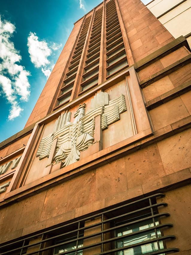 The eagle, designed by architect and sculptor Jan Goliński, is a prime example of modernist detail. With geometric lines and minimalist elegance, it perfectly complements the building’s constructivist design. This subtle integration of art déco aesthetics into modernism highlights the era’s innovative approach to architectural detail.