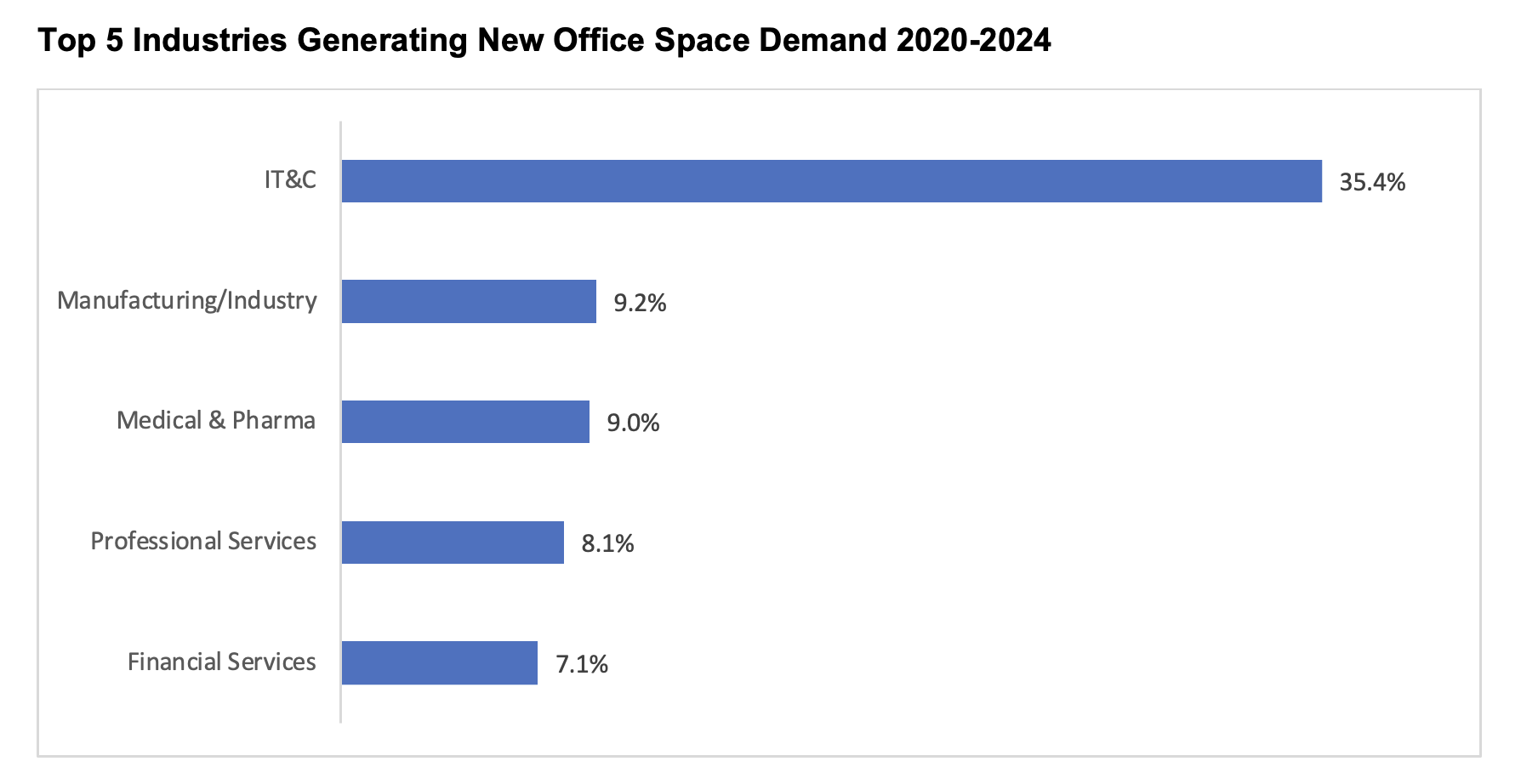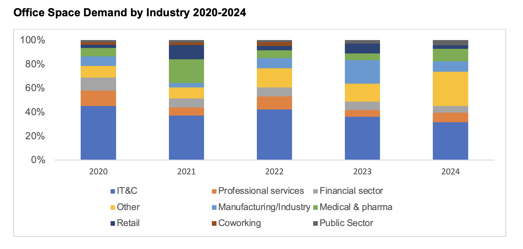 Total office space transactions, including renegotiations, exceeded 2 million square meters over the period, with IT firms accounting for more than 40% of the total volume.