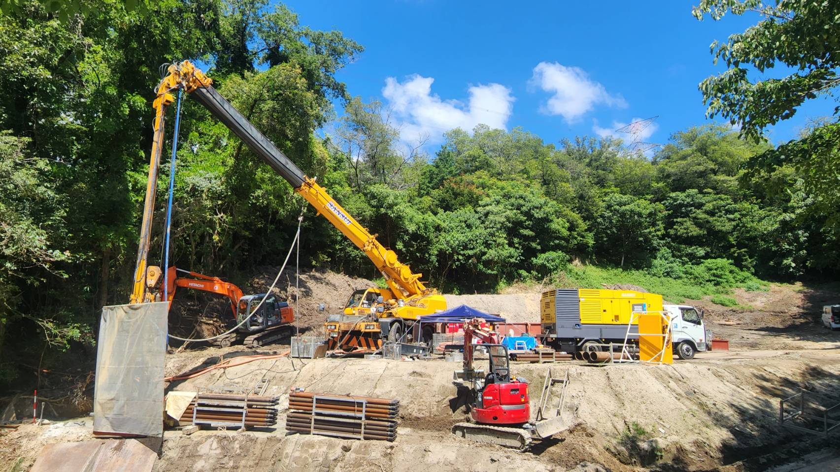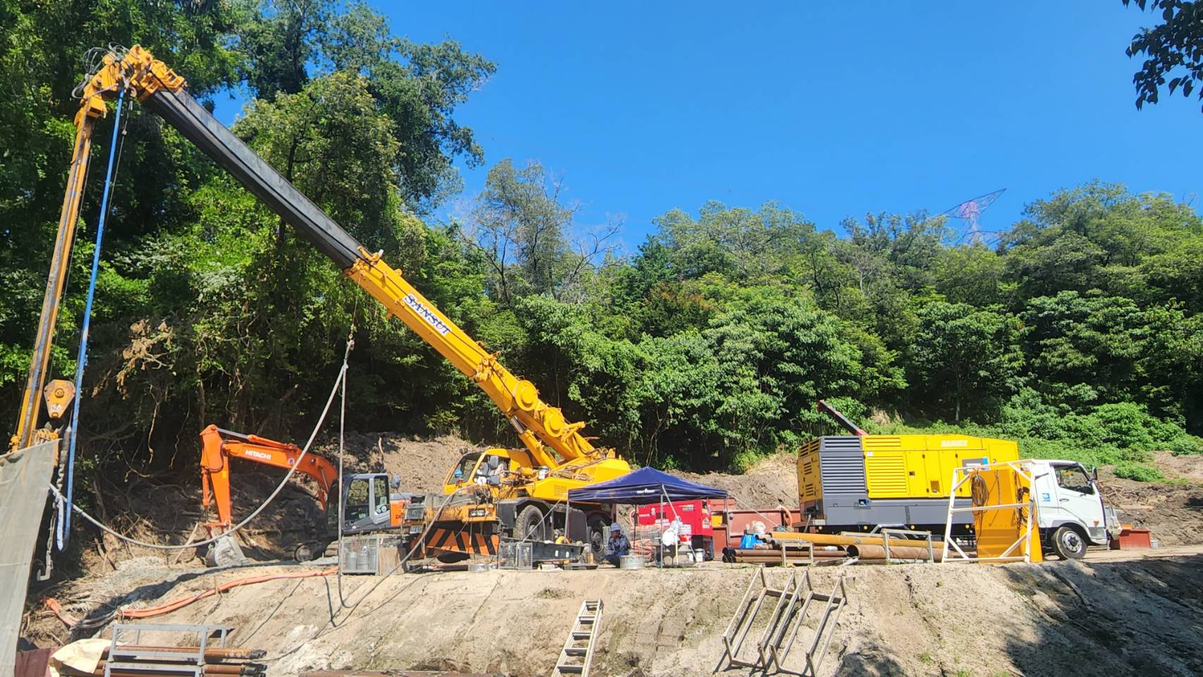 Sansui Kaihatsu specialises in underground and boring works, including water wells, geothermal systems, and foundation piling. For this project, consistent airflow and pressure were required to maintain drilling speed through varying ground conditions. The company selected the Y35 compressor for its ability to sustain stable performance throughout the drilling process.