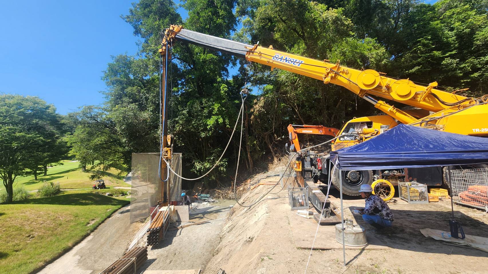 Beyond this golf course application, Sansui Kaihatsu has used the Y35 compressors on a range of projects including hot spring wells, geothermal installations, seismograph drilling, and temporary piling. The company owns two Y35 units, providing flexibility to adapt to diverse projects across Japan.