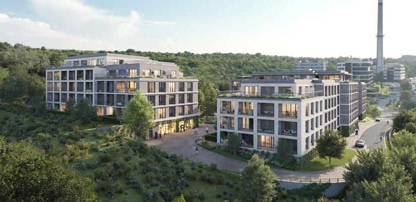 Apartment layouts will range from compact 1+kk units to larger 4+kk homes with terraces, as well as one 5+kk unit. Prices start at around CZK 6 million for a 34 m² 1+kk and reach up to CZK 24 million for a 115 m² 4+kk. All buildings will meet the highest energy efficiency standards and incorporate sustainable features such as green roofs and water recycling systems.