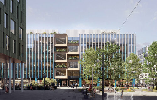 The six-storey building will provide around 29,000 sqm of gross leasable area. According to Skanska, it is designed to achieve net zero carbon emissions in operation, using renewable energy sources and energy-efficient technologies. The scheme will include photovoltaic panels, air and ground-source heat pumps, and will operate independently from the city’s district heating network.