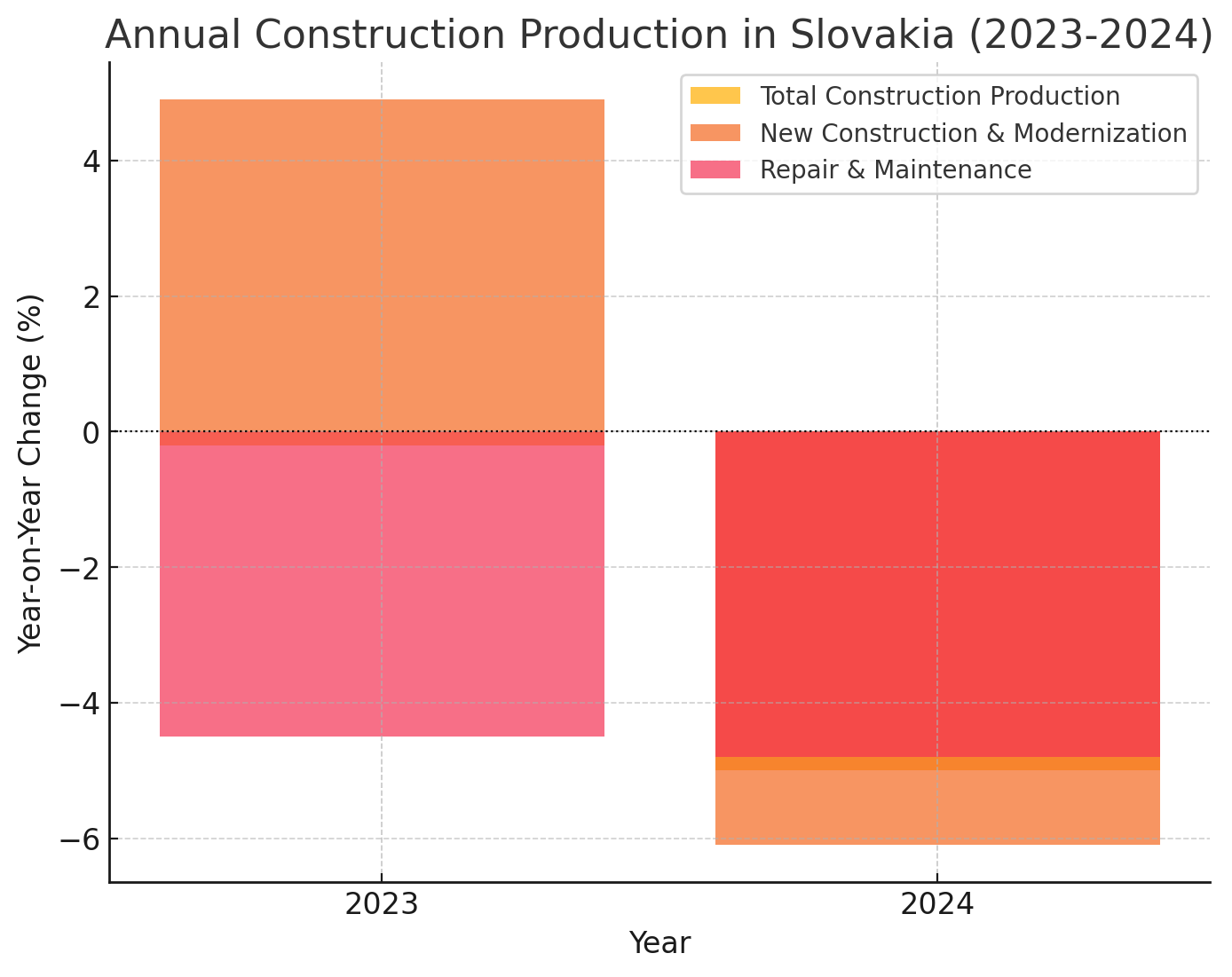 Slovak construction sector ends 2024 with a 5% decline despite year-end growth