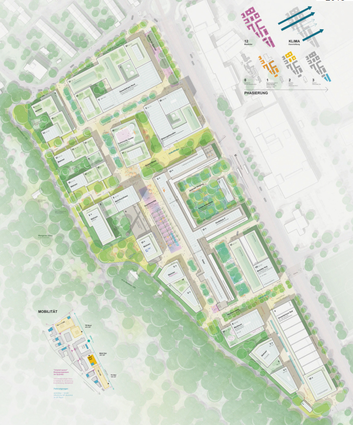 Urban climate considerations played a significant role in the selection process. The winning concept incorporates ventilation corridors and landscaping strategies aimed at improving microclimatic conditions, while also responding to the site’s topography. The integration of new buildings into the hillside setting was highlighted as a key strength of the proposal.