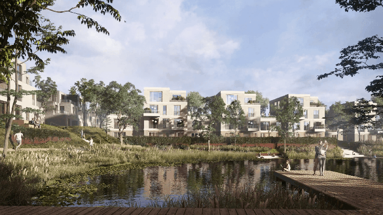 Urban and architectural design for the project has been prepared by Atelier Aurex, with the layout focused on integrating housing with landscaped public areas and the surrounding natural context. The location, situated near lakes and close to the Váh River, is being positioned as a quieter residential alternative while maintaining access to the city centre and key services.
