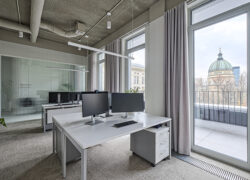 Another property, offered at more than €12 million, is located near the Ministry of Foreign Affairs. The building was converted into office space, fully renovated while retaining its 1940s façade, and includes two underground levels for 25 cars, glass lifts, open-plan floors and a top level with 360° glazing.